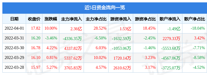 资金流向数据方面,当日主力资金净流入2.36亿元,游资资金净流入1.53亿元,散户资金净流出1.49亿元。近5日资金流向一览见下表: