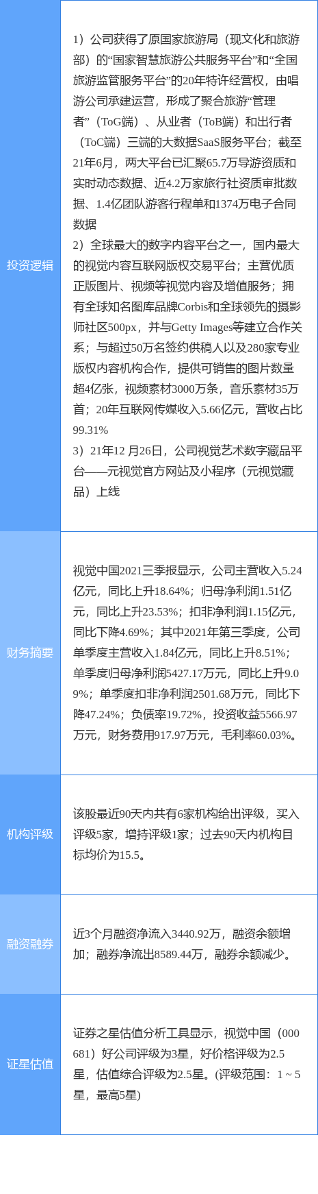 视觉中国涨停收盘,收盘价17.82元。该股于11点11分涨停,未打开涨停,截止收盘封单资金为7670.67万元,占其流通市值0.71%。