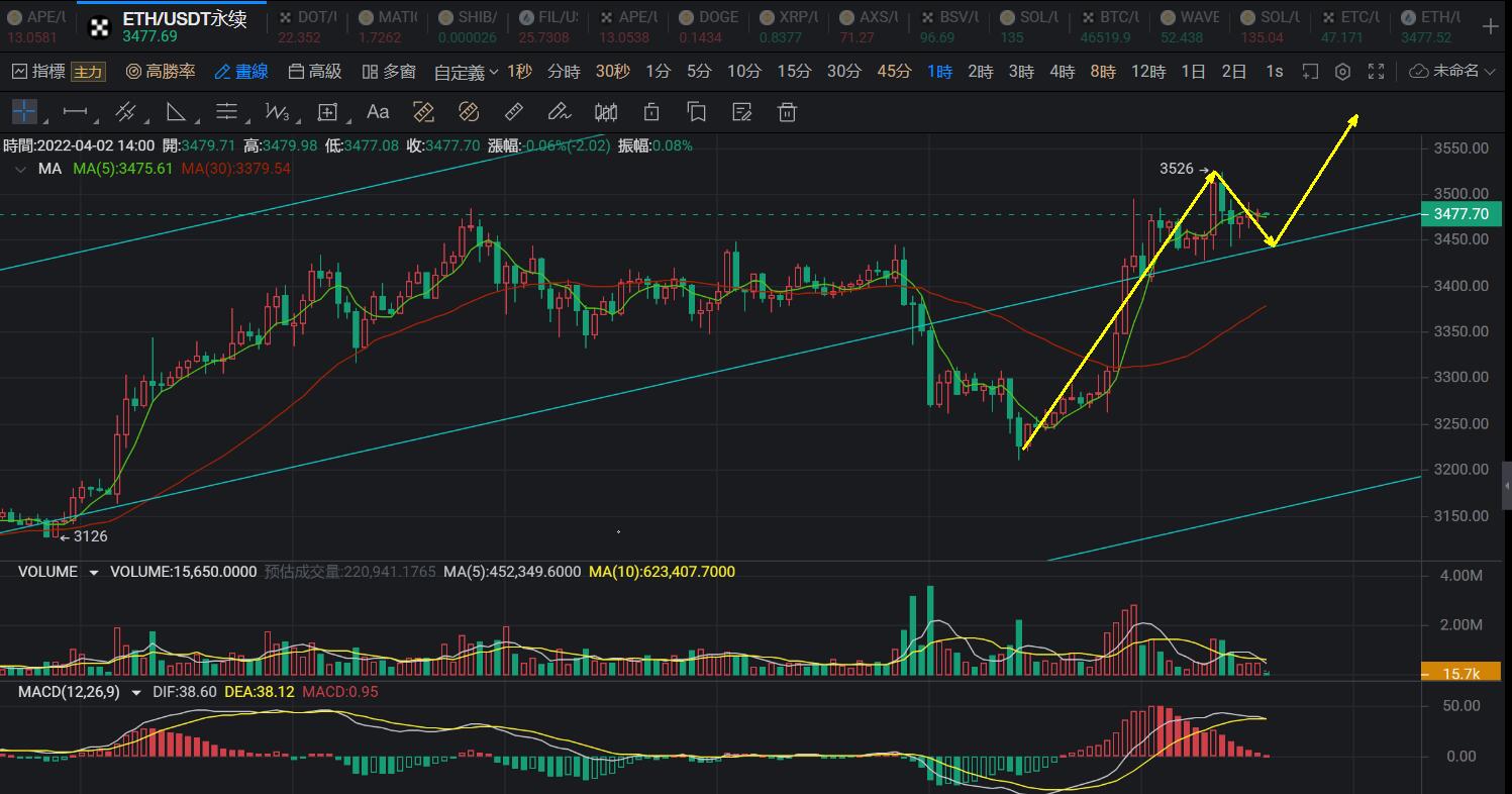 既然行情回归到正轨上面来,那么今天整体操作方向也就很明显,大饼前面多次强调的45000-46000区间再次成为强支撑,短期内行情站稳支撑位上方,说明前面的刺破只是虚破,那么按照虚破支撑反看涨对待,接下来行情大概率就是以此支撑位置走出进一步上涨,先看什么时候突破48000关口是当下的第一目标,若是行情再次启动破位的话看向5万关口也是可期的。日线大跌之后转阳,小级别走势转头向上并且突破强压力区间再次把压力位转换为支撑,接下来只要行情不再次跌破45500-46000区间,那么这个区间就是一个非常理想的开仓多单进场的时机,以太已经刷新高点,大饼有些滞后但也不排除后续发力反超的可能。日内思路,回落45500-46000区间开始做多,止损带45100一线,目标就看48000压力位能否突破再说。