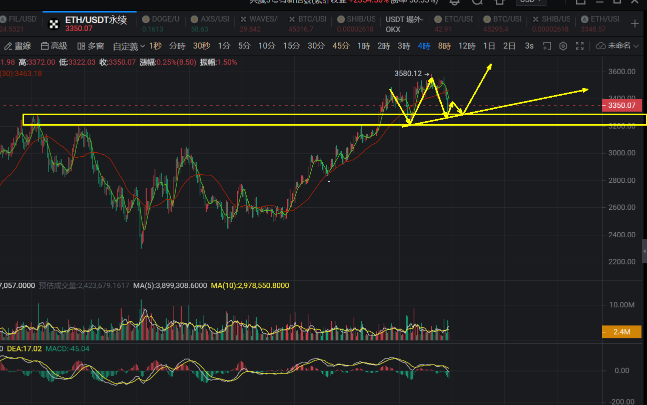 昨天市场再次迎来了大幅回撤,盘中比特币以太坊纷纷走出了大幅下跌,其中比特币下跌幅度再次破位45500一线支撑位,最低跌至44400附近,而以太坊也再次触及3200-32800一线的前高点支撑位,行情是否转向走空头是目前市场上面普遍的担忧,毕竟高位调整了这么长时间以来,大饼的关键支撑压力位位一直在互换的过程当中,而以太坊也一改多日的强势上涨不断新高的气势,再次走出大幅回落下来,那么今天首要关注的还是市场短期内是否做出了大方向的选择。