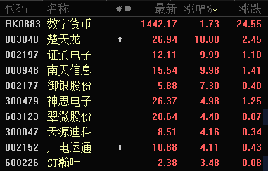 4月6日,数字货币概念盘中再度活跃,截止目前楚天龙、证通电子、南天信息涨停,御银股份逼近涨停,神思电子、广电运通、天源迪科等大幅拉升。
