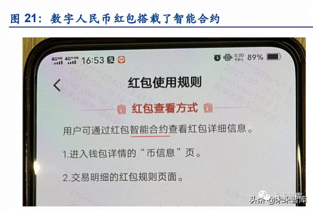 场景一:数字人民币红包发放。在人民银行举办的媒体吹风会上,央行副行长范一飞表述, “有关各方积极探索与各种创新技术紧密结合的新业务、新应用。多数试点地区地方政府结 合智能合约功能推出数字人民币红包类消费刺激措施。”因此,我们可以看到,数字人民币 红包是智能合约的一个主要应用场景。数字人民币红包的特点在于指定商户、具备有效期, 在有效期过后红包资金将自动回收。我们认为这背后就是数字人民币可编程性和具体体现。