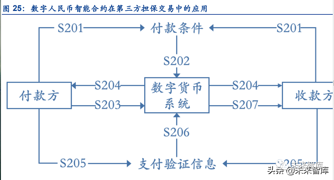 场景四:第三方担保交易。在央行数研所的专利《数字货币的支付方法和支付系统》中,介 绍了数字人民币智能合约在第三方担保交易中的应用。