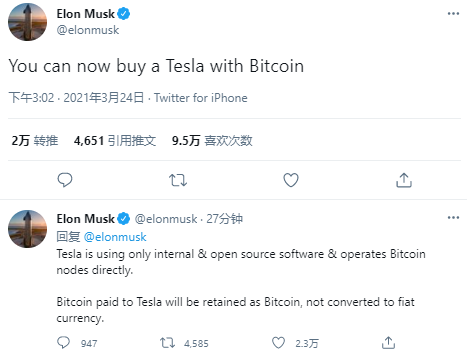 典型如特斯拉,其CEO马斯克被视为虚拟货币的拥趸。马斯克频繁在社交媒体上带货比特币、狗狗币等,特斯拉也在投资比特币。特斯拉去年提交给美国证监会的文件中显示,公司总计购买了15亿美元的比特币,并可能长期不定时购入和持有数字资产。另外,特斯拉还一度允许用户使用比特币购买汽车。