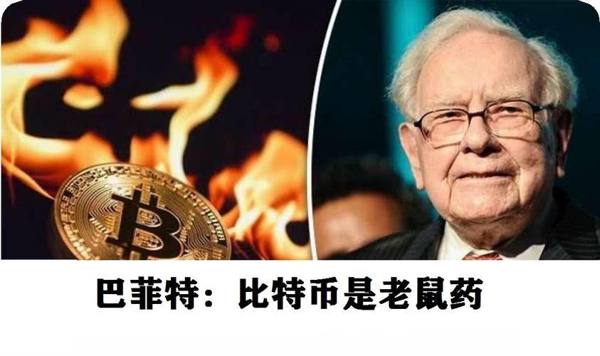 Til举着一张巴菲特的照片,上面写着“鼠毒”,指的是巴菲特用“鼠毒”来形容比特币。巴菲特的另一句话是:“我没有比特币,我永远也不会拥有它。”