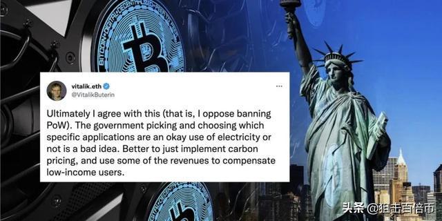 Vitalik Buterin随后转发这则贴文并表示认同,他补充说,「我反对禁止PoW」,「由政府挑选哪些特定的应用程式可以用电,这是一个坏主意」,「更好的解决方案是直接实施碳定价,并将部分收入用于补偿低收入用户」。