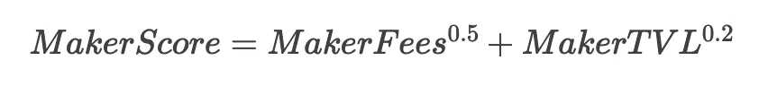 根据 LP 实际获取的交易手续费和 MakerTVL 算出分数,参见下图