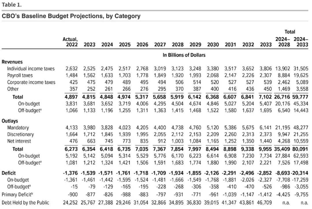 老年和医疗福利开支以及国防开支只会不断增加。这意味着美国政府的财政赤字将继续上升。据估计,在未来十年内,每年 1 至 2 万亿美元的赤字将成为常态,不幸的是,两党都没有政治意愿改变这一趋势。