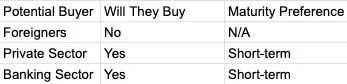 下一个问题是,如果美国财政部正在出售债务,公众想购买哪种类型的债务(如果有的话)?这个问题也很容易回答。