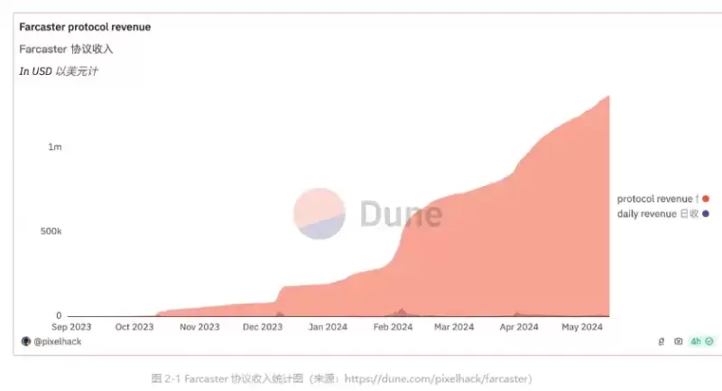 从数据统计可以看出 Farcaster 的收入一直保持着不错的增长势头,项目总收入已经突破 100 万美元。
