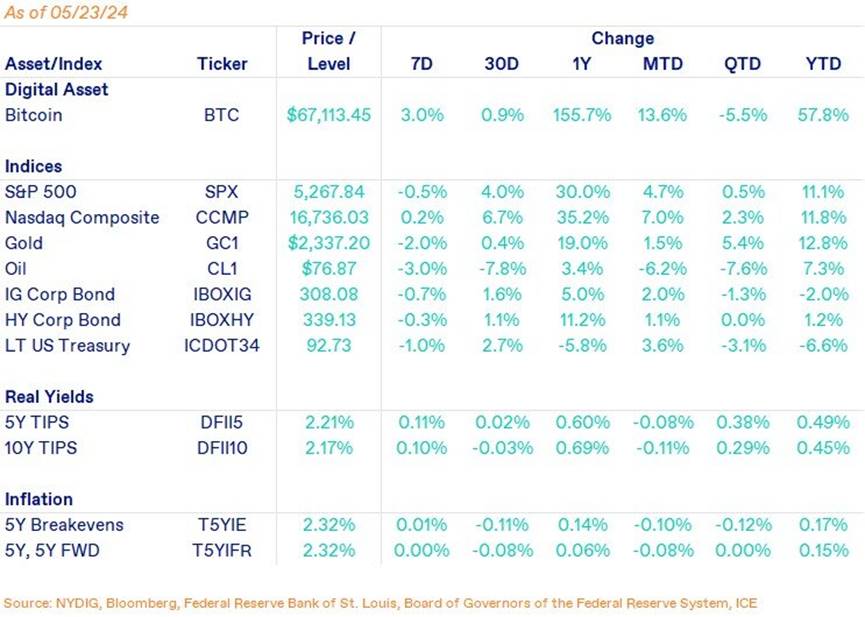 比特币本周上涨 3.0%,但也并非没有波折。随着美国证券交易委员会 (SEC) 周一准备批准 ETH ETF,比特币一度似乎将创下历史新高。但周二开始的一些比特币转向以太坊,以及周四高于预期的 PMI( 通胀 ) 数据,阻碍了这一计划。周四,包括股票和加密货币在内的风险市场出现了突然逆转,比特币在下午 4 点收盘时的波动尤其剧烈。目前尚不清楚收盘时波动的原因是什么,因为 GBTC 只有少量流出,而整个现货 ETF 综合体的流入总额达到 1.08 亿美元。ETHBTC 交叉盘收盘时波动特别大,在反弹之前下跌了 5.7%。