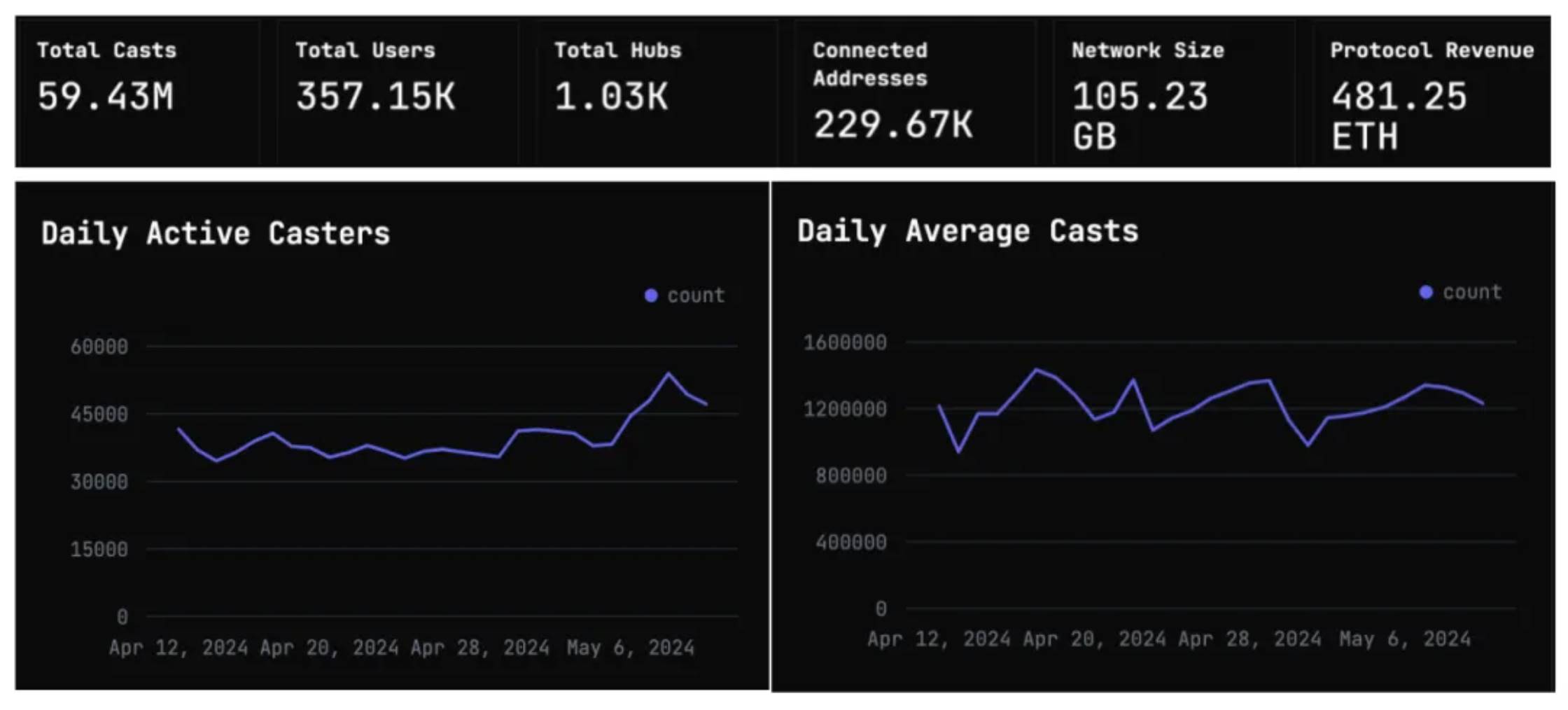 Source: https://farcaster.network (对比 Twitter: 245M DAU,每日500M Tweets)