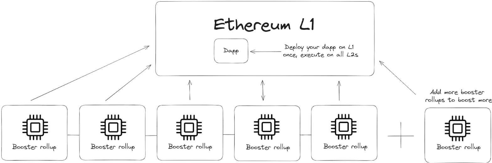 BBR 构想的诞生源于 Taiko 团队对于 Based Rollup 的进一步思考:为 Based Rollup 添加开箱即用的原生以太坊 L1 DApp 扩展功能以进一步增强优势。BBR 不仅与 L1 无缝集成,且完全兼容以太坊的现有架构,可以增强任何类型的汇总,且其所采取的双层结构实现了交易执行和存储的分离,兼顾高效的同时保证去中心化。这种非常接近原生以太坊扩展的解决方案提高了交易执行和存储效率, DApp 只需部署一次,就可以自动将其扩展到所有 L2,如果需要额外的区块空间,还可以添加更多「booster rollups」,且无需任何额外的设置工作。