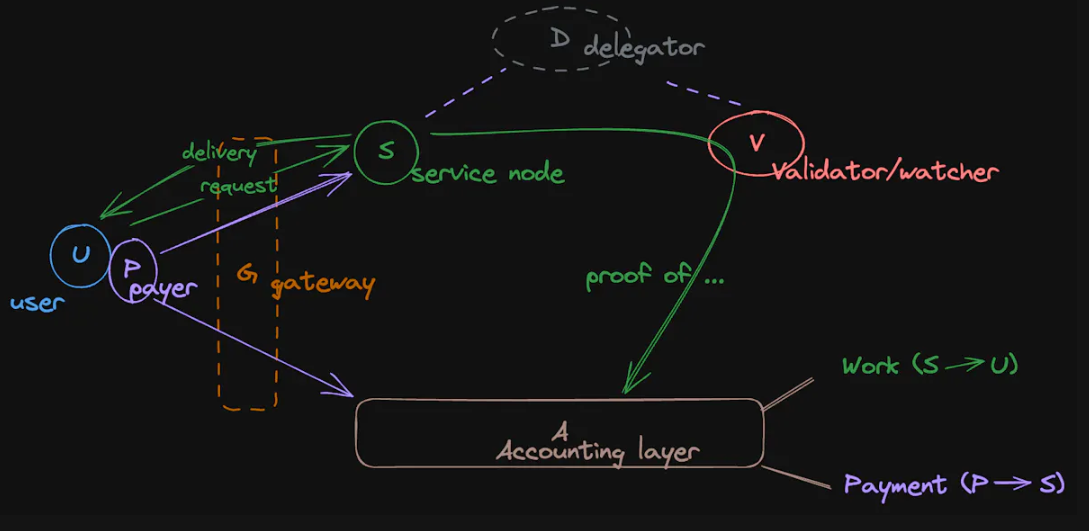 记账层:跟踪提供的工作/服务的流动和状态及相应的付款。请注意,协议自行定义记账逻辑,例如如何在区块链上跟踪和存储工作和付款(我们将在另一篇文章中研究这一点)。例子包括 Livepeer 的 Arbitrum 或 POKT 网络的 POKT 链(由 POKT 验证节点操作)。