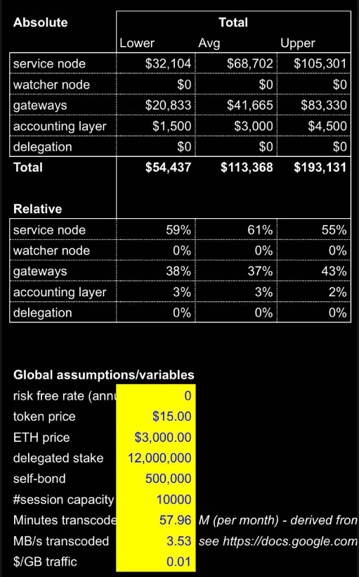将所有这些部分放在一起以创建成本估算是一项具有挑战性的任务。我们不仅需要为网络中每个角色的每个成本组成部分提出估算,还需要考虑并非所有节点运营商具有相同的成本结构。确定总体成本估算比简单地将所有网络节点运营商的数量乘以一个节点运营商的估算值要复杂得多。