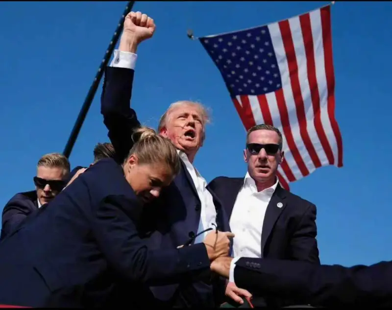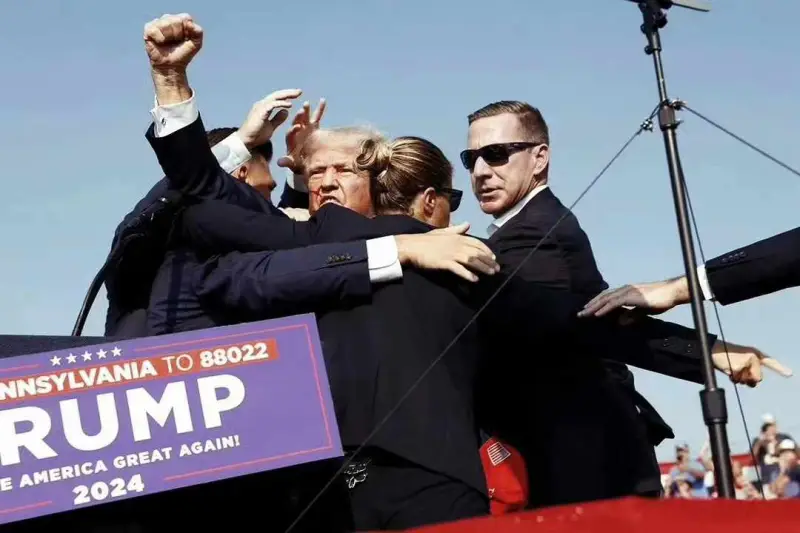 美国东部时间7月13日18点11分,美国前总统特朗普在宾夕法尼亚州总统大选造势大会上遭遇枪击,满脸飙血的特朗普随即被特勤局保护,在向群众喊话示意后,被送往医院治疗,身体状况基本无大恙。