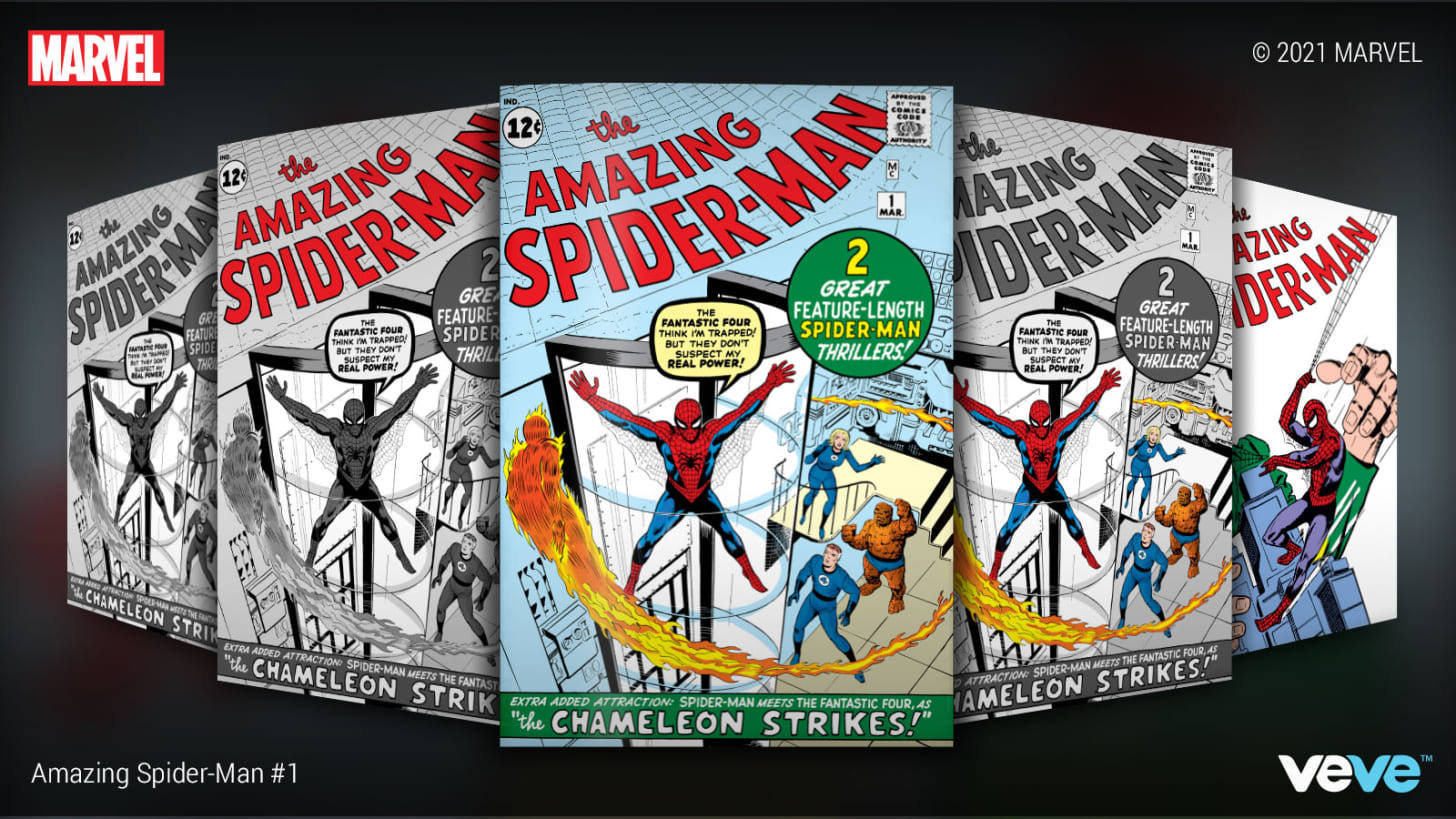 今年6 月,迪士尼旗下的漫威宣布计划通过VeVe交易市场销售 NFT 。在VeVe 这里,八月份可谓是“漫威月”。8月7日,他们以蜘蛛侠数字摆件系列拉开序幕,超过60000个NFT在24小时内被抢购一空,价格根据稀缺性从40美元到400美元不等。