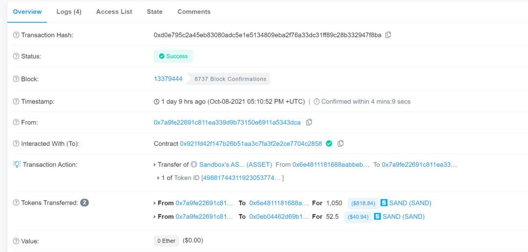 2021 年 6 月 9 日,Boson 宣布以约 704000 美元的市价在 Decentraland 中的维加斯城区购买虚拟地产,并计划建立一个虚拟购物中心。2021 年 7 月,The Sandbox 上面积逾 530 万平方(24*24)的虚拟土地被以近 88 万美元的价格拍下。