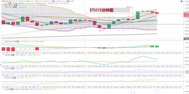 持币者(btc068068)行情分析ETH:和比特联动的以太坊,之前怎么样就不多说了,以太坊目前在15分钟图中,呈现的是冲高后的阴跌。也和比特币行情一样,看以太坊行情能走多远吧,最近注意主力资金的高位筹码出逃即可。