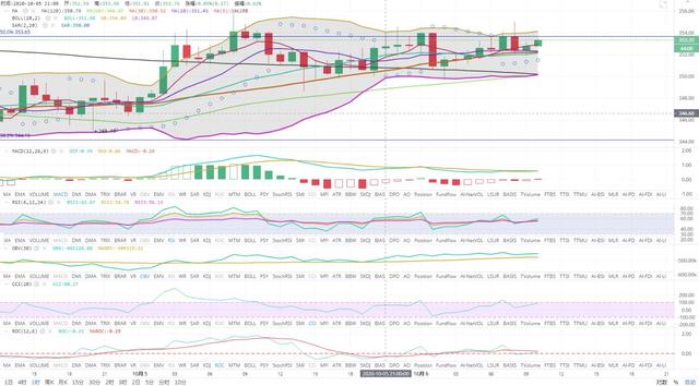1.可在350附近一线多单进场,止损345,目标看到356-360。