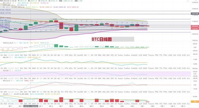 BTC行情分析:日线的趋势图上看,昨日的日K线以较长下影长线收线,日线图上比特币行情昨日并未突破10500关口一线的强力支撑,瀑布过后进入小区间震荡也是正常,毕竟多空量能需要重新聚集,今日早间的一波上探受阻于布林带中轨位置,整体来看,比特币行情还是偏向震荡行情。
