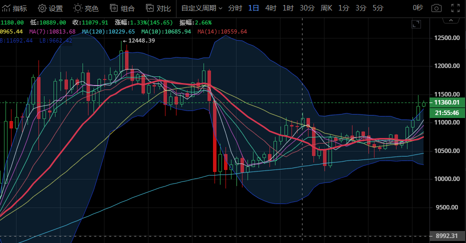 比特币昨日早间十点左右价格再刷新高至11489,拉升350余点。下午行情接连回踩,晚间六点左右行情回踩至最低点11236附近,今日早间行情延续震荡,目前稳定在11317附近。