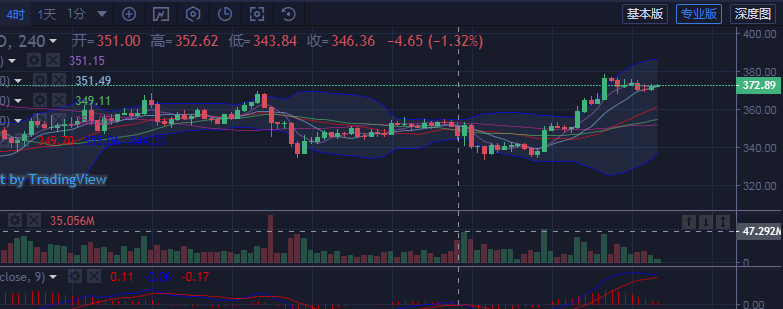 以太坊今日行情波动不大,早间八点左右行情回踩至最低点369.05后小幅度反弹,行情稳定在372.5附近持续窄幅震荡。