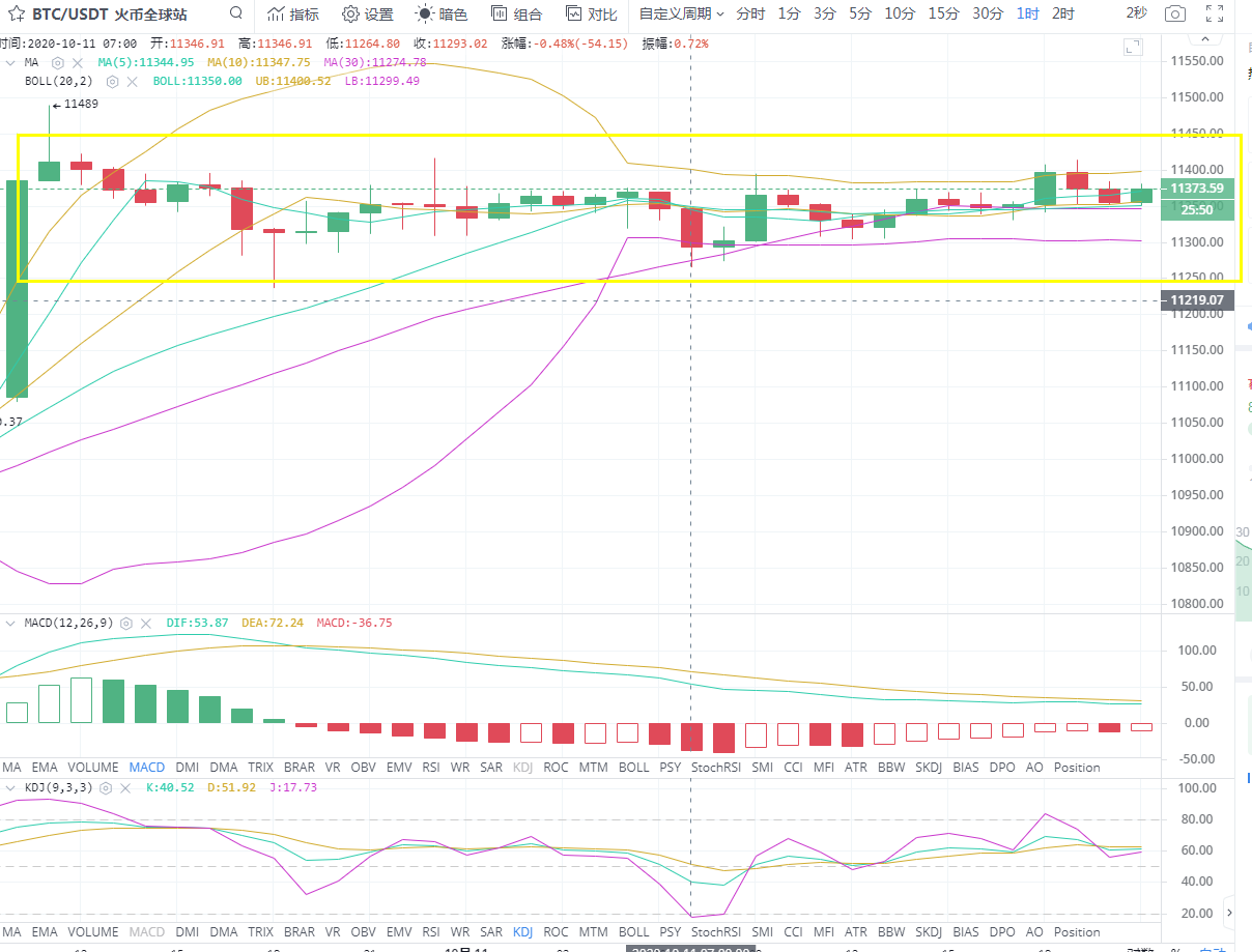 比特币日线上看分析K线运行在布林带上轨有企稳11300支撑,日线上一个月维持区间10000-11000震荡调整后本周周期再次破位上方11500压制上调拉伸,日线上连续三个交易日阳线收起,今日日线级别比特币也是稳步扎根于11300上方震荡调整,昨日行情放量上涨至前期下跌平台支撑11500附近受阻,目前行情有所回落。价格于布林带上轨上方运行,5日均线上穿10日均线。附图指标MACD于零轴附近金叉运行,整体呈现多头强势局面,后面继续关注通道破位情况。日线对于后市走势预测价格保持在1.14万美元以上,并在11489美元处遭遇阻力,这恰好是9月3日的峰值,随后比特币下跌13%,至9960美元。这一价格水平与1.14万美元至11740美元之间的成交量分布节点一致,但如果多头能够突破这一阻力群,则突破1.2万美元是有可能的。从四小时图看,目前行情处于高位震荡盘整,布林带向上张口,k线运行布林带中轨上方,5日均线开始走平,多头攻势逐渐减弱,预计晚间将延续震荡局面。附图MACD双线金叉向上发散,绿色动能柱开始缩量。下方关注11200一线支撑,上方压力位11500.综合来看,晚间操作上高空低多,若产生破位,则可顺势入场即可