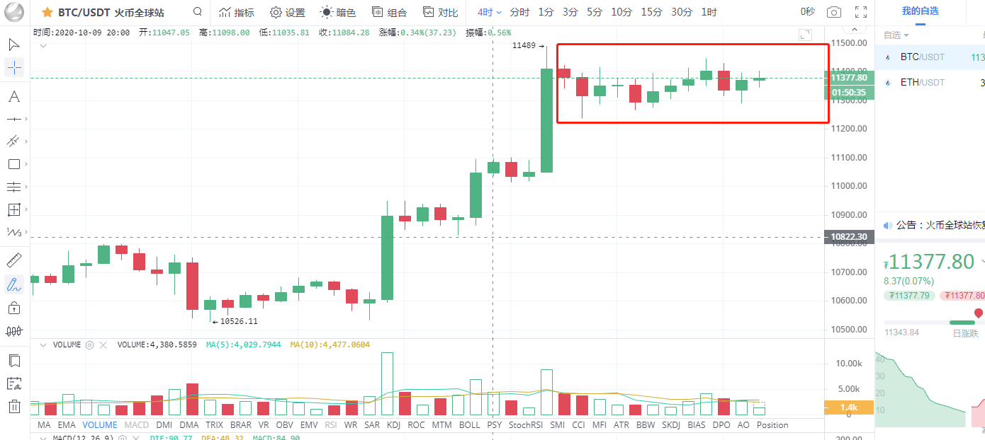 彤欣言币:10.12比特币以太坊行情分析高位震荡,单边何时到来