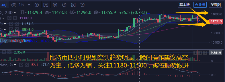 比特币四小时级别来看,布林带平缓向前运行,币价分别向上向下插针,午间一根大阴线币价下行稳定在中下轨区域运行。各均线微微向下拐头运行。附图中MACD快慢线向下拐头运行在零轴上方,红色动能柱放量,盘面依旧保持空头占优。汐柔建议晚间做单仍需注意做好风控。建议关注下方11100-11180支撑,上方阻力看11450-11500,操作建议高空为主,低多为辅,破位顺势跟进关注公众号:币汐柔。