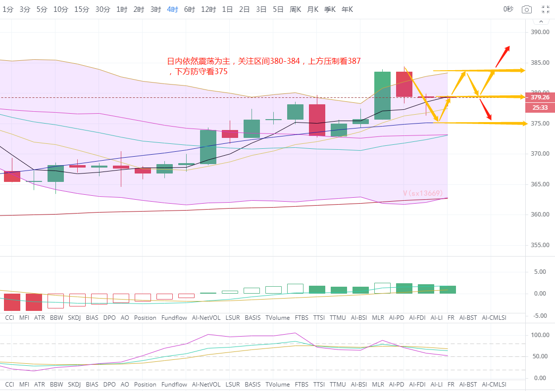 策略一:企稳380一线多单买入,止损4个点,目标384,破位387继续看394