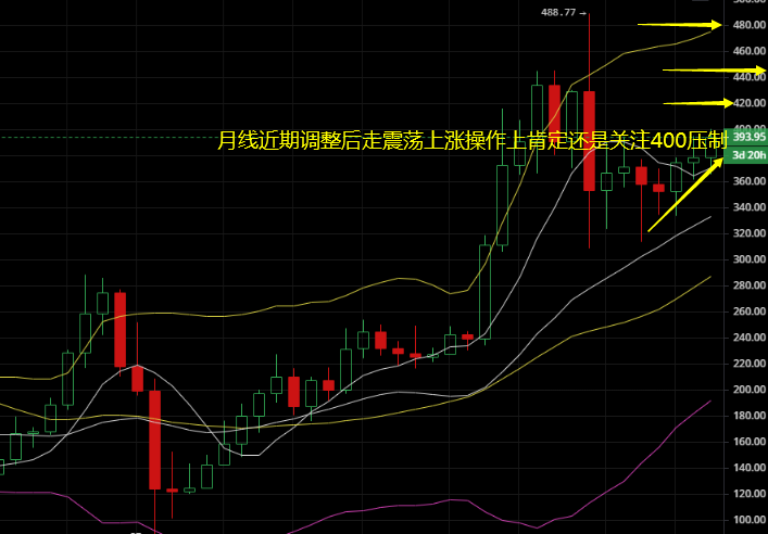 策略一:以太坊企稳395做多,止损4个点,目标400涨破看405.