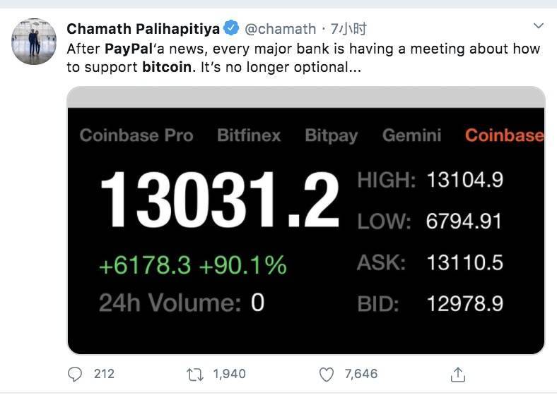 编辑今天更是传出了PayPal要支持加密货币支付的消息,作为一个全球3.46亿用户;2600万支持商家;全球存款第20大银行,有美国支付宝之称的顶级金融机构,它对加密货币的支持确实是一件非常好的事情。很多人也把这个消息当成了这两天比特币暴涨的原因。
