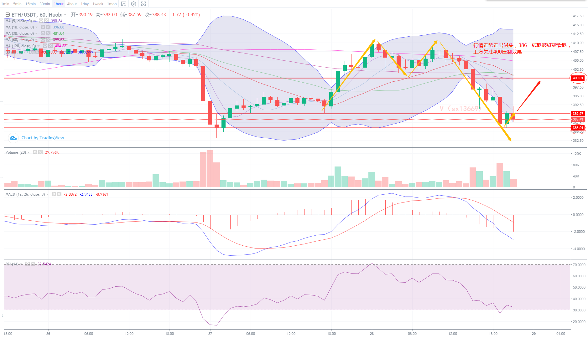 以太坊走势联动大饼晚间再次跳水跌破前期低点390一线,测试触及386附近止跌回暖,空军上攻390压制小区间震荡寻求破位。这个剧本是不是似曾相识,这几天爆仓动辄都是上亿美金,主力机构和财团先放出利空讯息杀死空军,再突然一个V型反转爆掉多军,来回收割,最后筹码收集了,大方向就出来了。