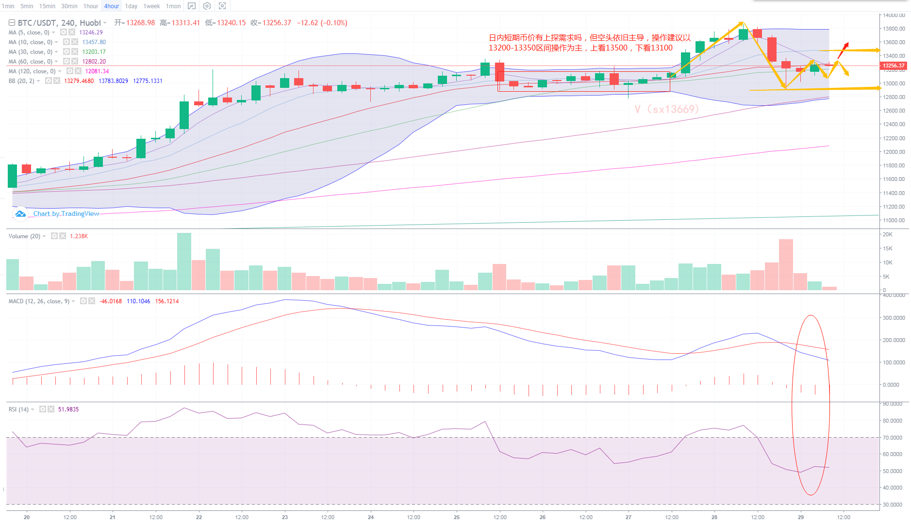 策略二:反弹13450-13400附近空单进场,止损13600,目标13250,破位看13100