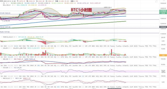 BTC行情分析: 1小时图中,比特币行情冲高微幅回落后,行情再度进入区间盘整期,目前比特币行情在13740一线附近,布林带整体上行有逐渐再度收口的趋势,行情已经从布林中轨上方回落到中轨下方,MACD中空头量能初步释放,比特币行情可结合以太坊具体分析。