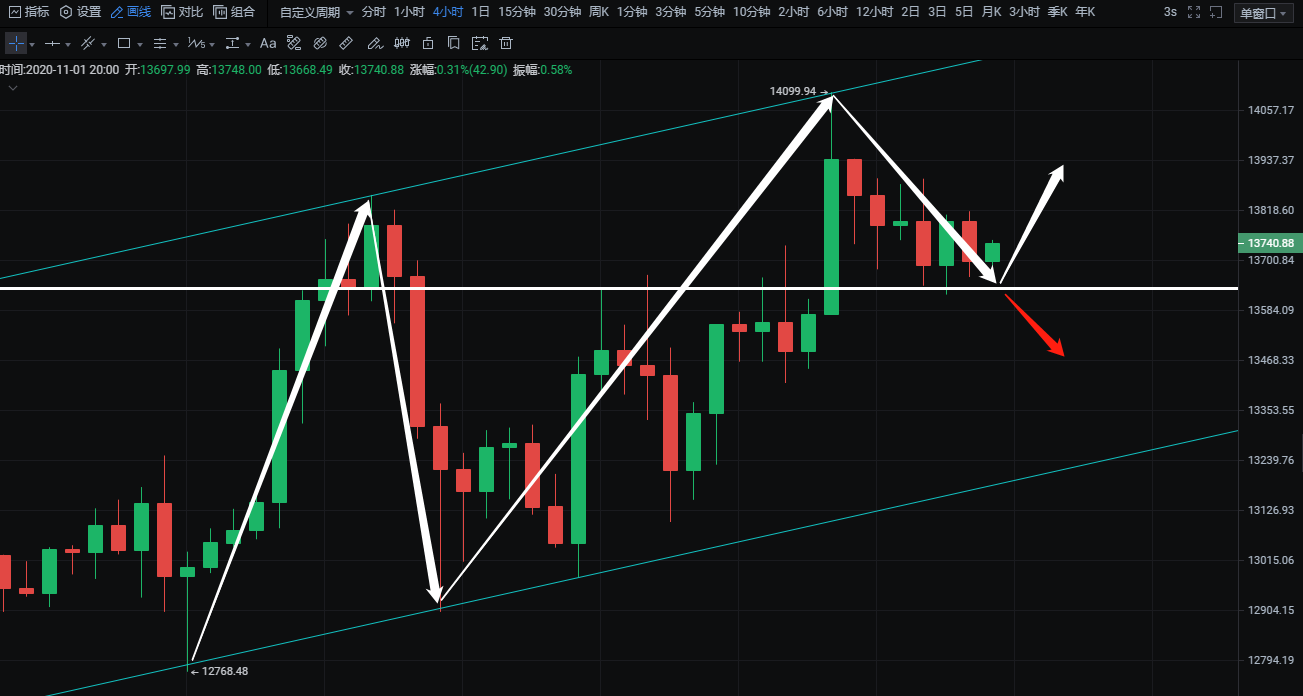 1:13650附近多,目标13750-13850,止损100点