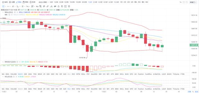 昨天下午开始进入跳水的节奏,进行了600点的下跌回调,受消息面影响很大,区间也是需要修整,昨日没有跌破昨日底部13202,今日最低13286.26,到下方13200-13100附近一线形成有效支撑,这样来看说明后市反弹的节奏仍然存在,因此这个区间和附近仍然可以短多,见好就收。