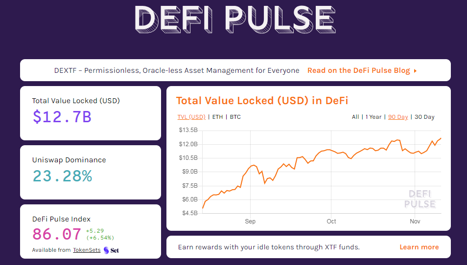 Defi这个概念火爆后,Defi确实创造了一些奇迹,但同时滋生了无数个打着“defi”概念的项目资金盘,DeFi ,就是去中心化金融,或者非中心化金融。衡量一个 DeFi 的行业规模一个重要指标是锁仓总值,TVL。如果把 DeFi 看成是一个大的金融机构,则 TVL 就是这家金融机构中基础资产的规模。Defipulse (网址:Defipulse.com)打开第一页看到的是目前Defi总锁仓量和锁仓第一的项目锁仓量占总锁仓量的比例。