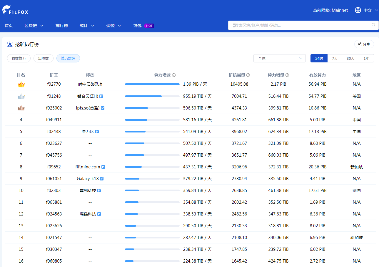 我个人更喜欢看这个算力增速排名,主网上线之后一切趋于稳定,能够持续增加算力的都是真正把IPFS当成一个长期经营的项目进行的,如果算力是负增长的,谨慎参加为妙。