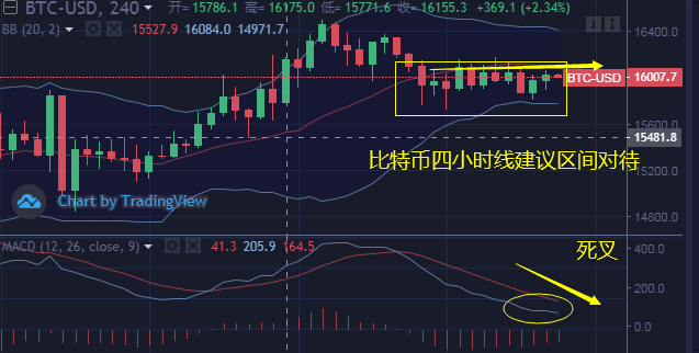 四小时线K线依旧受阻于中轨16200美元压制于中轨下方运行,四小时线从行情冲高受阻回落下行,短期比特币连续三个交易日比特币维持区间15750-16200震荡调整。早间行情触及低点15800一线获得支撑快速反弹上涨至16000一线盘整运行,在韩币钰老师写行情的时候比特币日内连续收取两根阳线,但是四小时线冲击于16000没有拉伸至中轨运行,从走势上看还是压制强势。小时线来看K线上午震荡上涨至中轨运行,布林带开口持平运行趋势。预计下午行情还会继续试探上行至16150一线运行,上方不破16200之前,白盘操作上韩老师个人建议维持区间16150-15800高抛低吸即可。