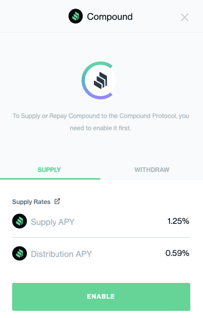 当用户接触Compound协议时(例如通过资产提供、借款、提取、偿还等方式),COMP会自动转移到用户钱包中。 此外,如果所有未分配COMP总计超过0.001 COMP的话,用户可以手动取回这类的COMP。