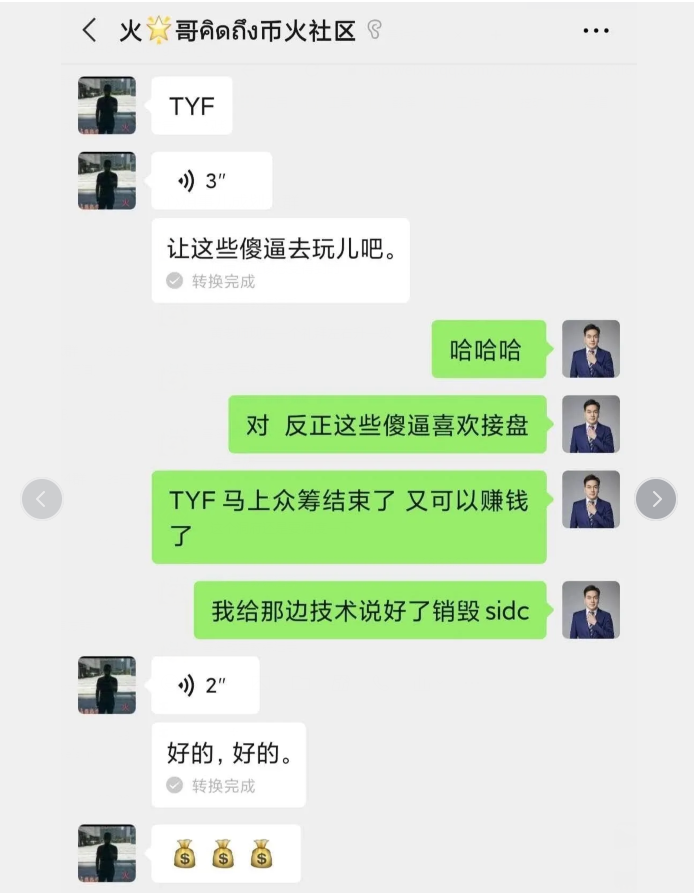甚至还说国人就是好骗,随便弄了个SIDC币,没想到搞得这么火。甚至还吹牛说,自己的币要上coinbase,散户在他们眼里就是傻逼。