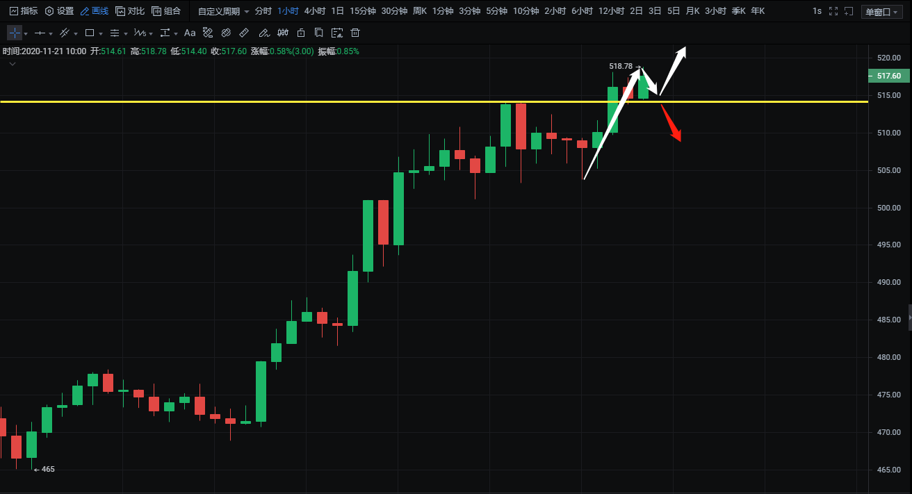 1:企稳510做多,止损5个点,目标520-515-530