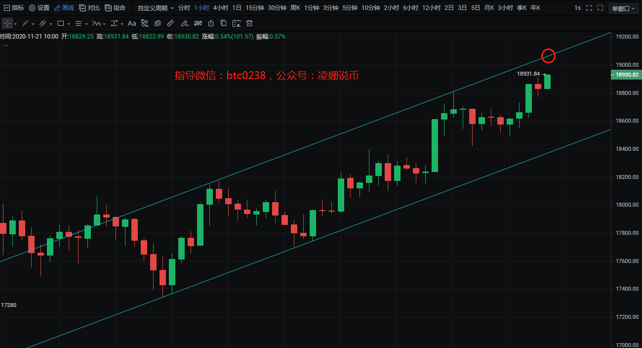 比特币小时级别来看行情呈阶梯式上涨,价格于早间收线拉升至18914美金,凌姗一直强调谨慎做空,20000关口触手可及,K线运行在布林带中轨上方运行,5日均线上穿10日均线运行,幅图指标MACD于0轴上方金叉运行,KDJ三线向上发散运行,RSI指标三线于超买区域向上拐头运行。上方压力位19000-19200,下方支撑位18600。操作上低多为主。