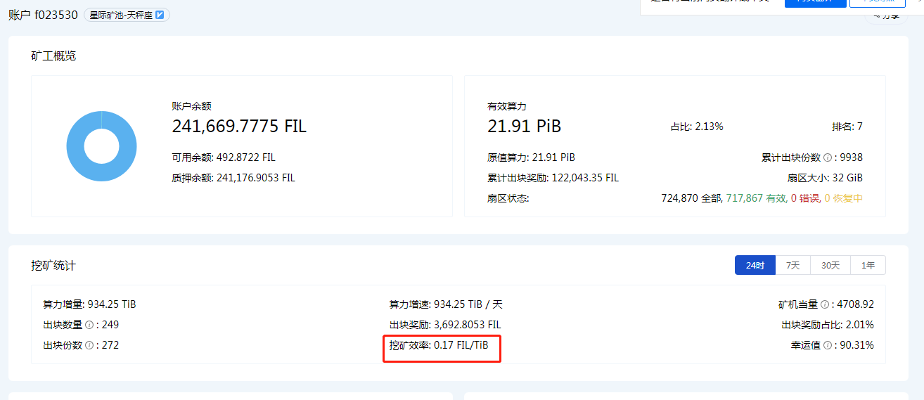 某星现在24h产量是0.18个fil,也就是说日产量就是128*0.18=23.4,去掉技术服务费20%也就是23.4*0.8=18.43