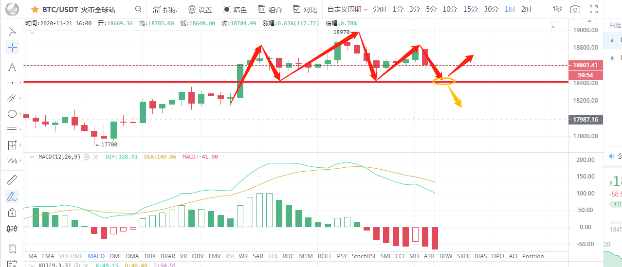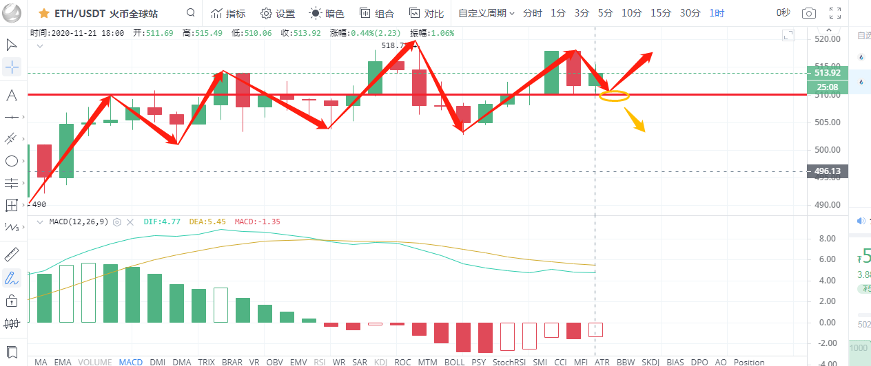 彤欣言币:11.21比特币以太坊晚间行情分析上攻受阻,谨防深度回落