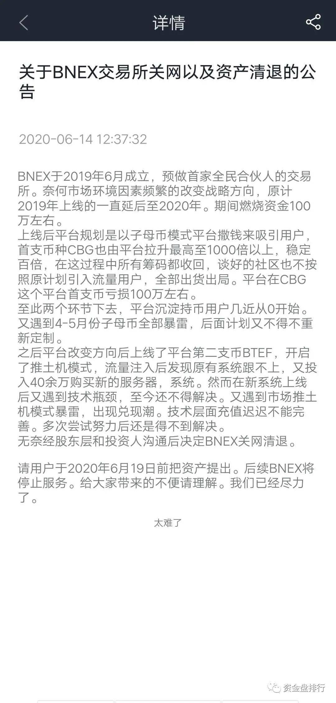 在上个月熊大说过,行情如果再这样低迷下去,交易所跑路的会更多。最近几天,关网的交易所不下10家, 知名还有一些不知名的交易所也是频繁爆出跑路。就在今天中午,又是一家交易所称无法维持运营宣布关网。