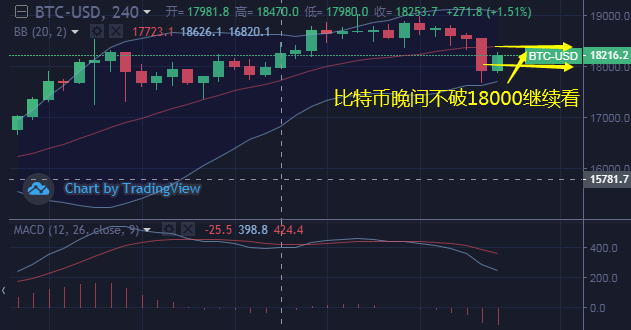 策略一:比特币18000一线多单买入,止损100个点,目标18200-18250.