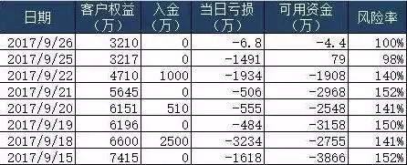 据流传出的交割单及跳楼时间可以看出,在9月13号的时候,客户本金还有1.0152亿,截至到9月26日,账户亏损只剩下3210万。在付晓军跳楼身亡的前十天,账面亏损高达1.4亿。